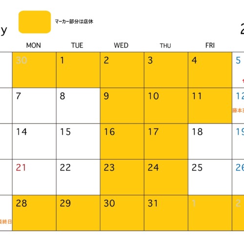 前半は出張や棚卸し、店舗メンテナンスのため長期店休をいただき申し訳ありません。