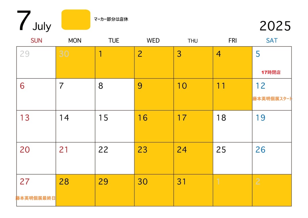 7/5は勝手ながら17時で閉店しますので、どうぞお気を付け下さい。