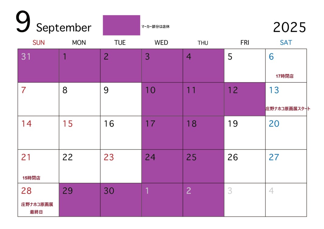 9/13~28は庄野ナホコさんの原画展を開催します。