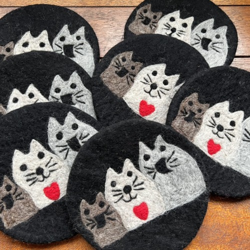 ネパールから可愛い猫雑貨が届きました。 ポーチや鍋敷きなどあたたかそうでカラフルな雑貨をお楽しみください。