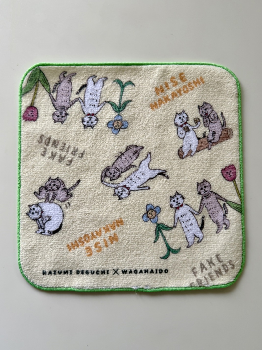 出口かずみさんの大好評シリーズ「ニセ仲良し」のミニタオルハンカチの新色完成しました!