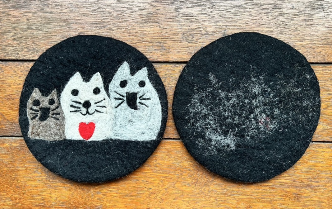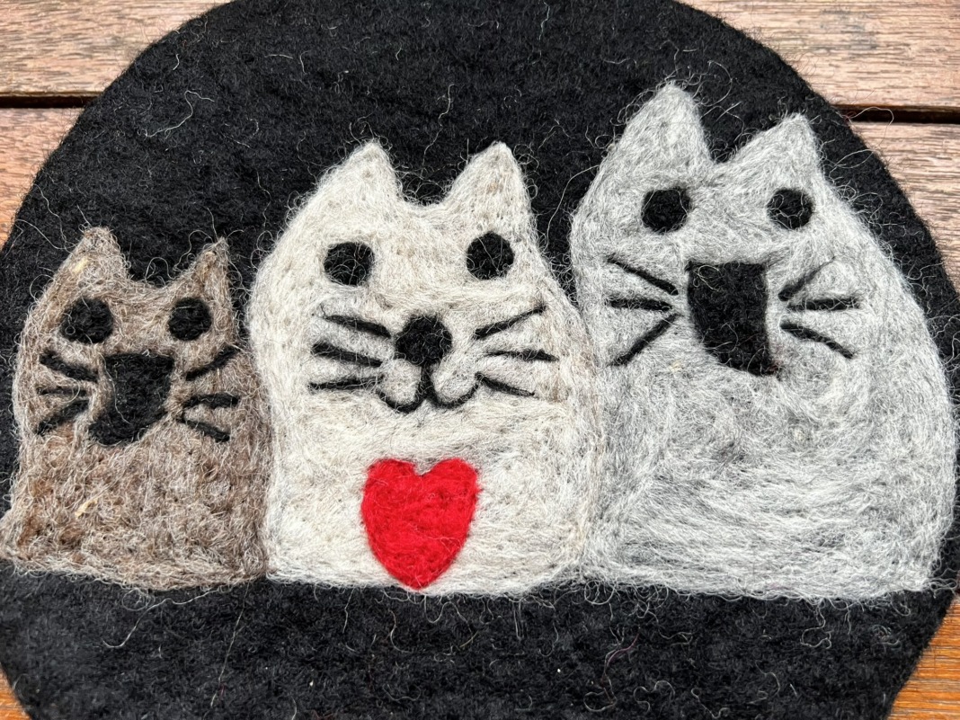 3匹の猫があしらわれていて、上に鍋などを置くのを躊躇してしまいそうな可愛さです。
