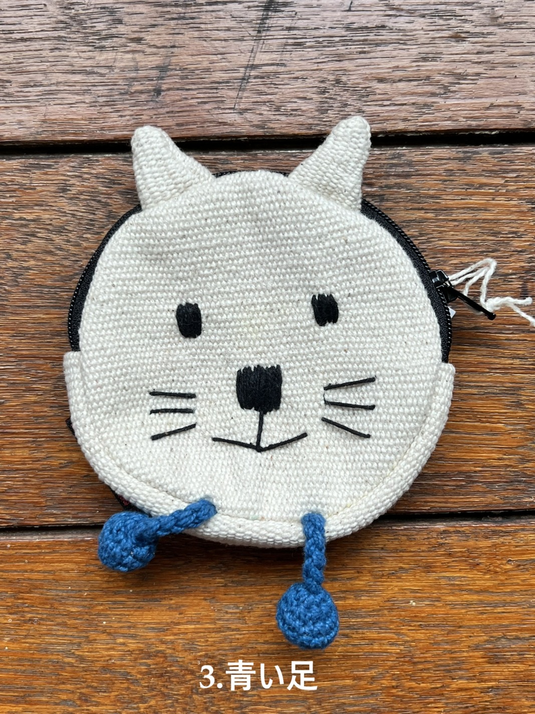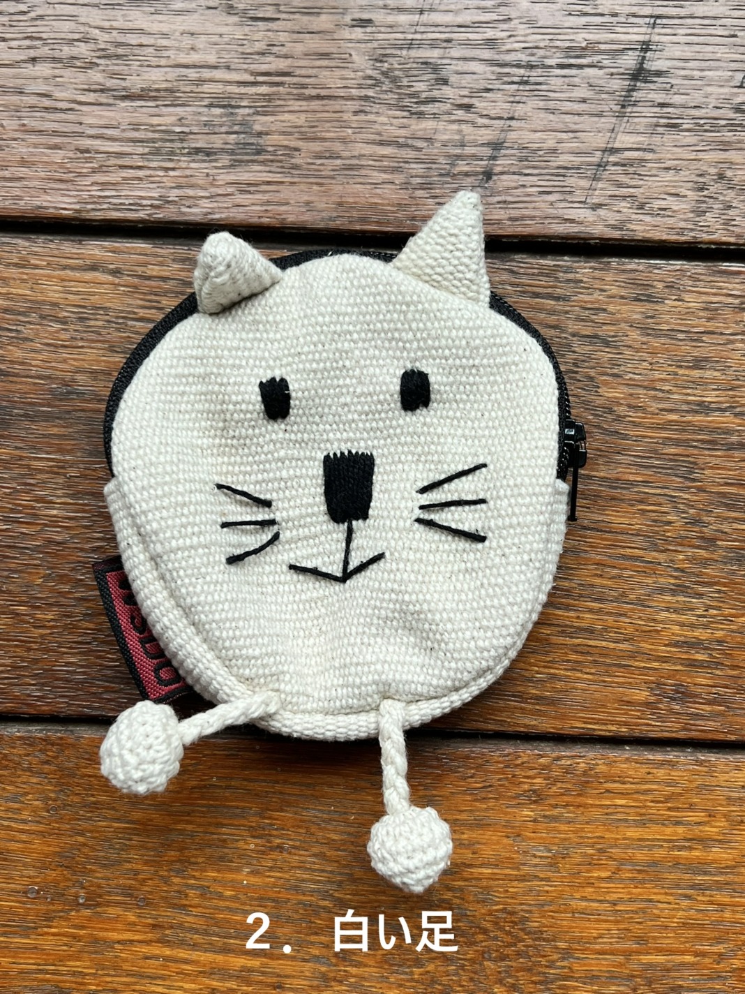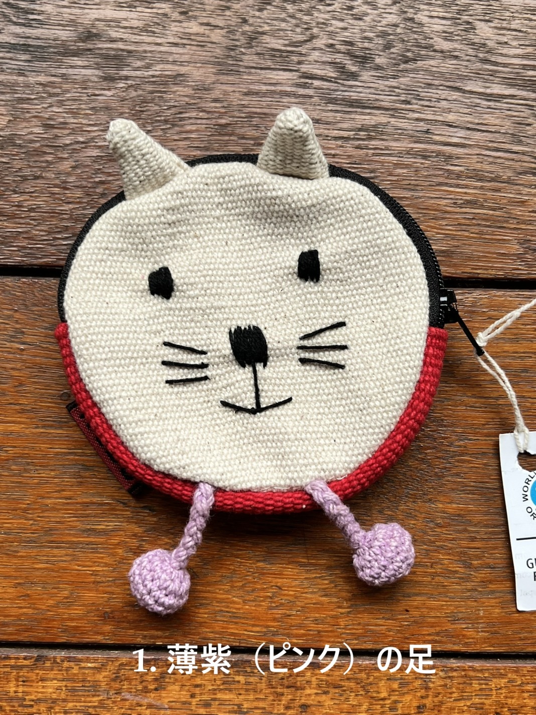 猫の足のような飾りが付いて、裏面にはカラフルな染め織りの布が使われています。