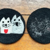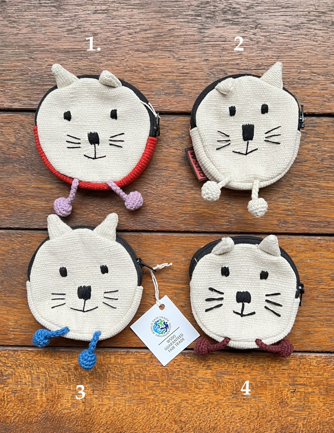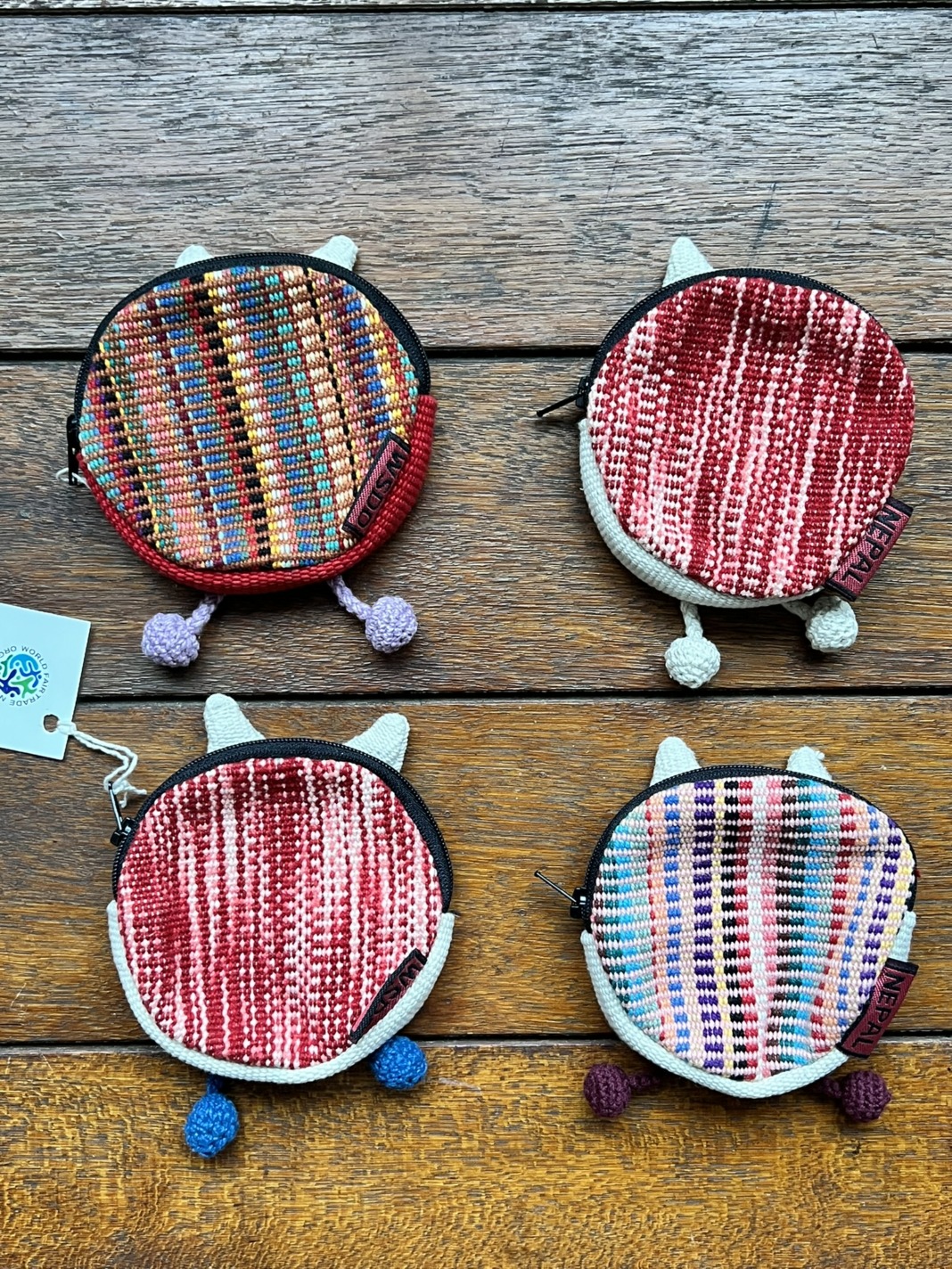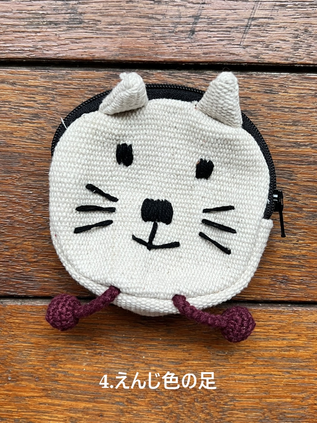 猫の足のような飾りが付いて、裏面にはカラフルな染め織りの布が使われています。