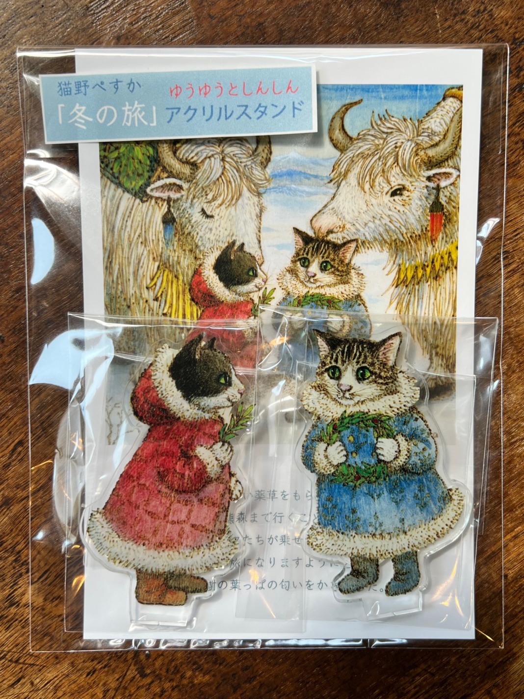 当店のオリヂナルカレンダー「Un mondo di gatti」の12月の挿絵、「冬の旅」から二人が抜け出して、皆様のお手元に。