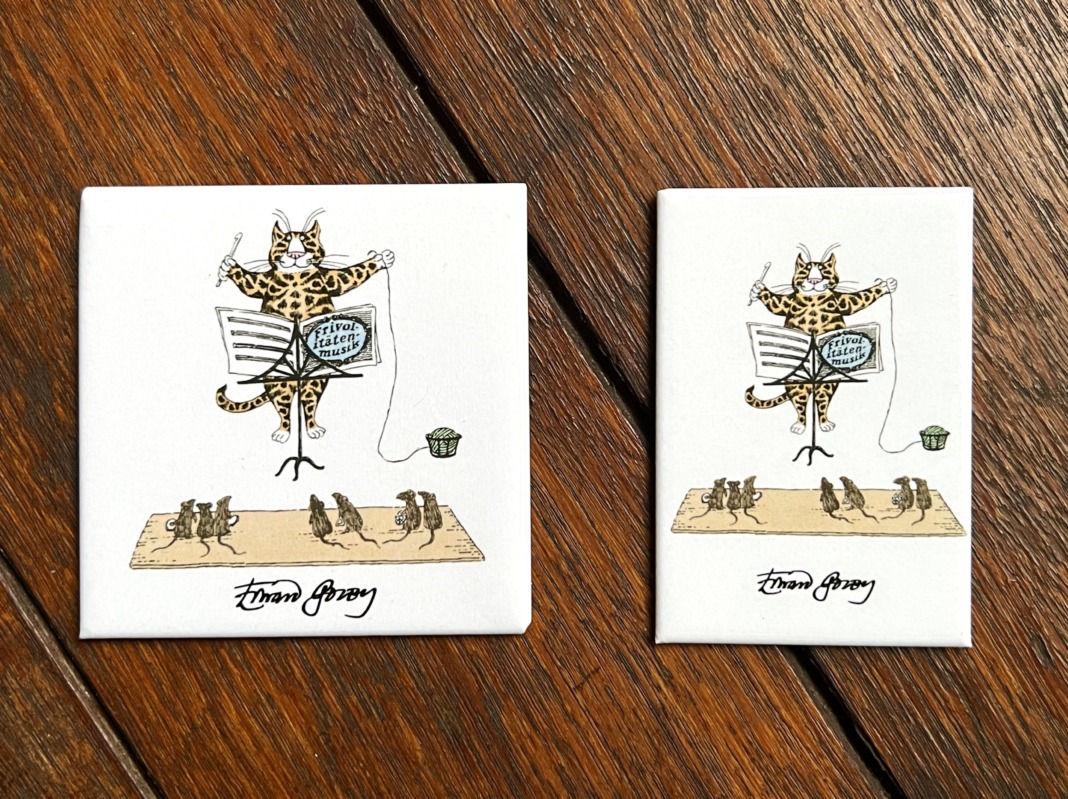 大人のための絵本作家、エドワード・ゴーリーは大の猫好きだったと知られています。猫が鼠たちを指揮しているマグネット。さてどんな音楽になるのでしょう?