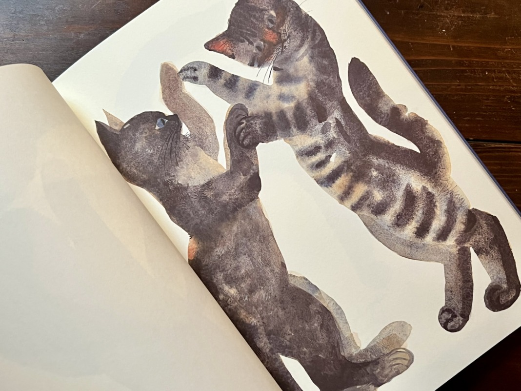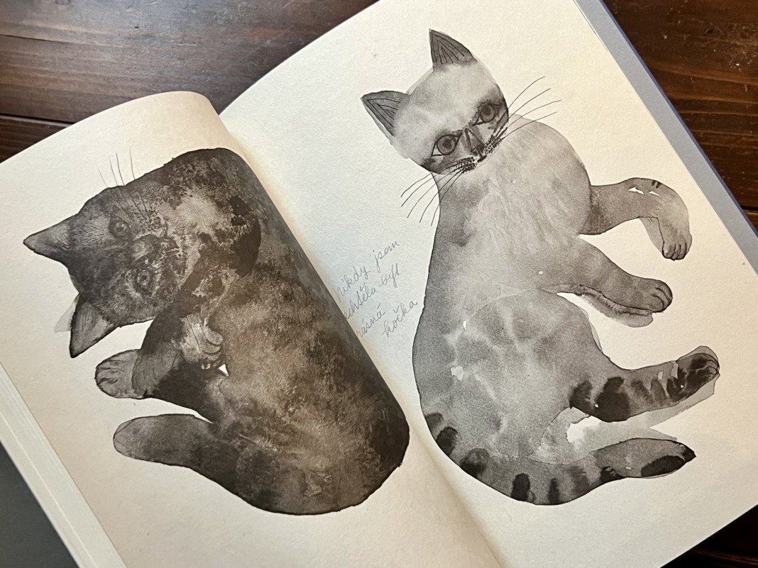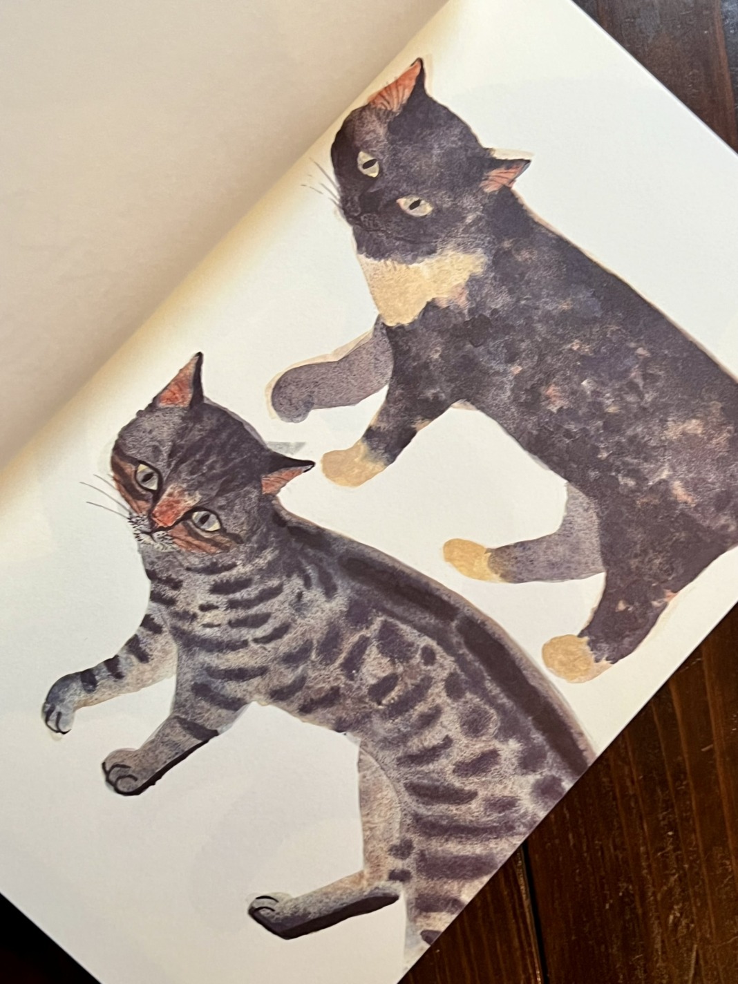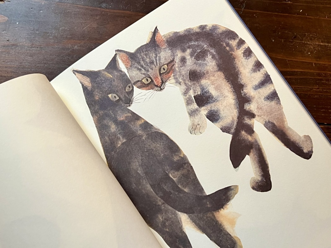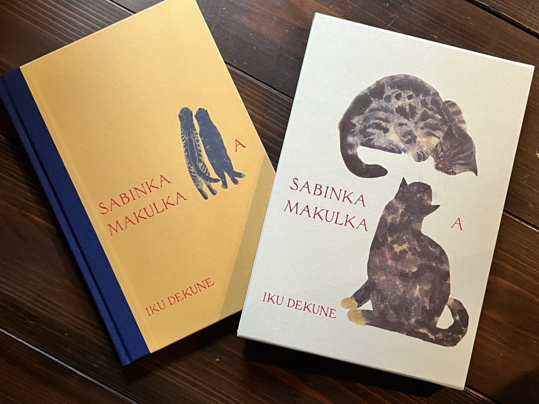 作家の愛猫サビンカとマクルカが墨絵のような、たらし込みやにじみをきかせた技法で毛並みまで生き生きと描かれた画集。しっかりとしたハードカバー+函付きの豪華な一冊です。
