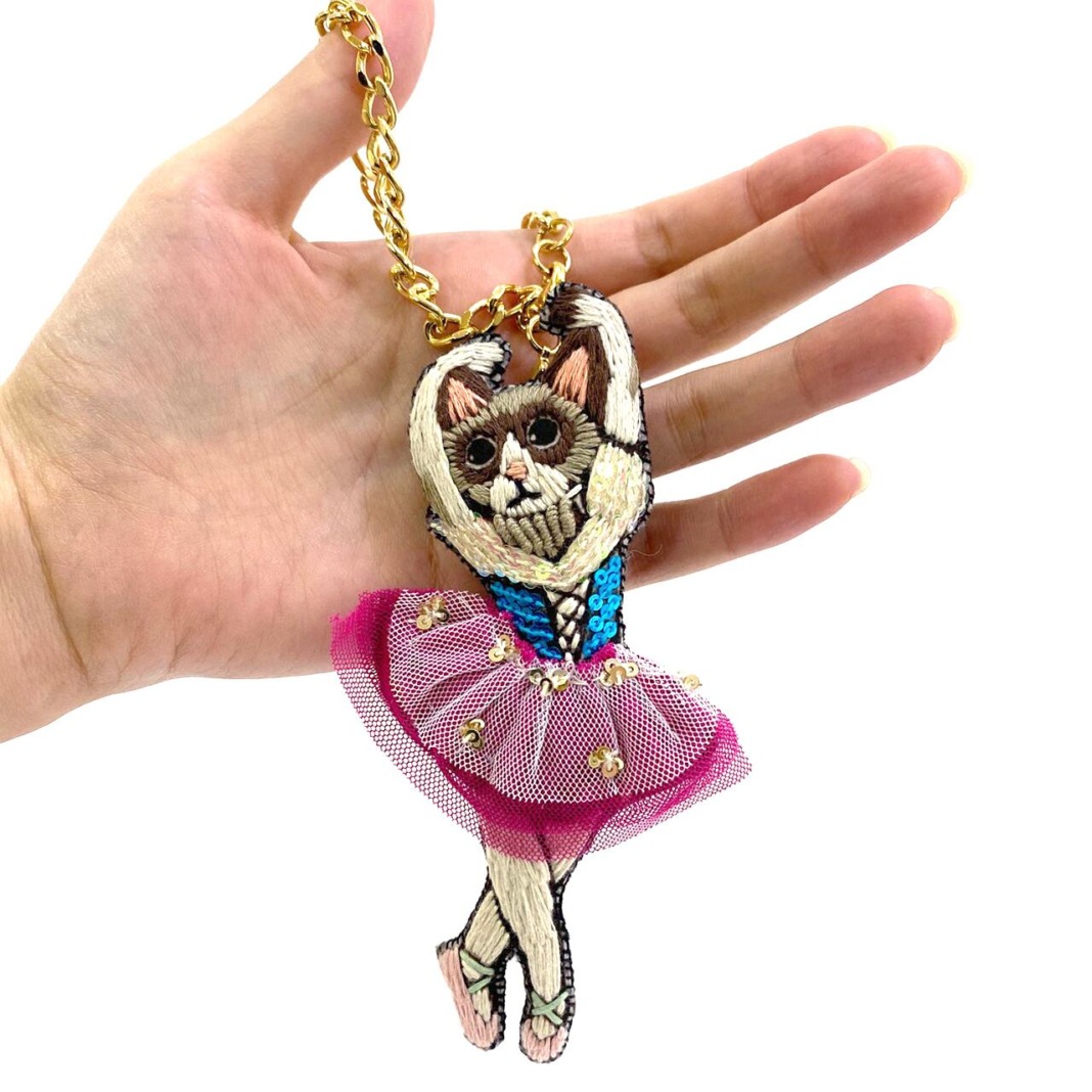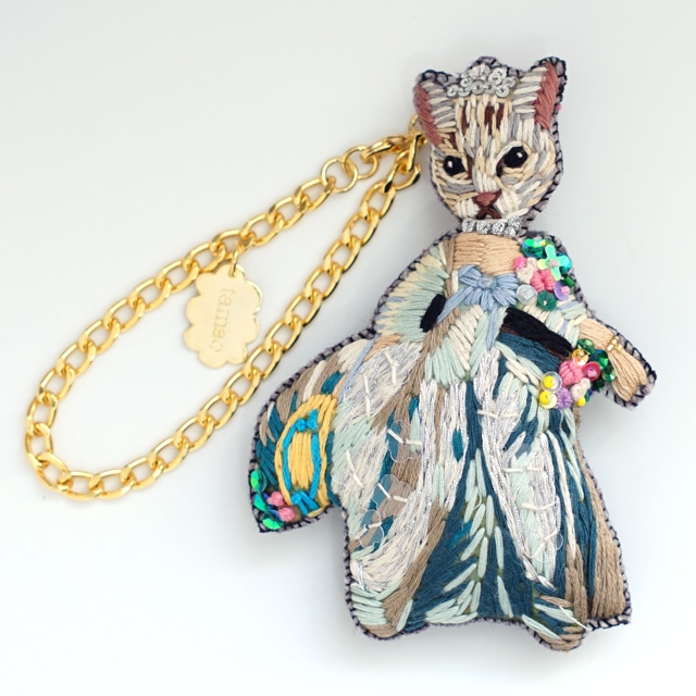 【売切】刺繍バッグチャームブローチ 猫のバレリーナ/プリンセス