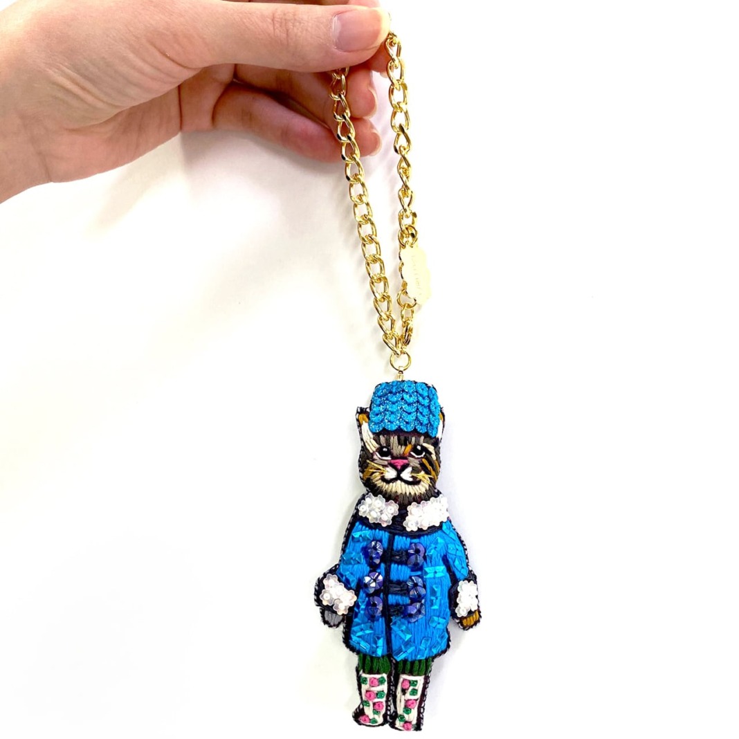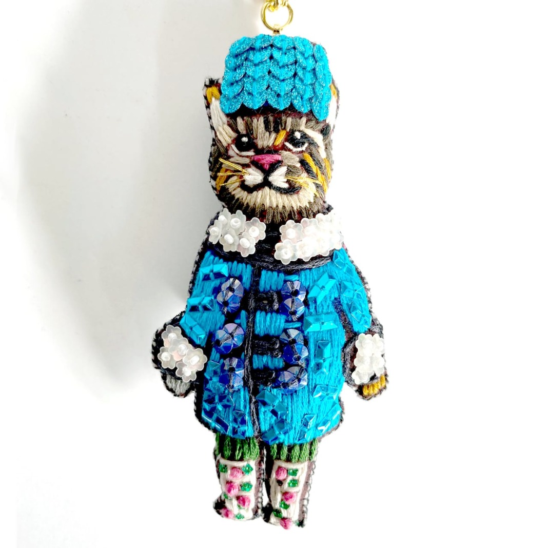 刺繍で物語の主人公や動物を表現しているユニークなチャーム。バッグチャーム金具は取り外しできるので、ブローチとしてもお使い頂けます。