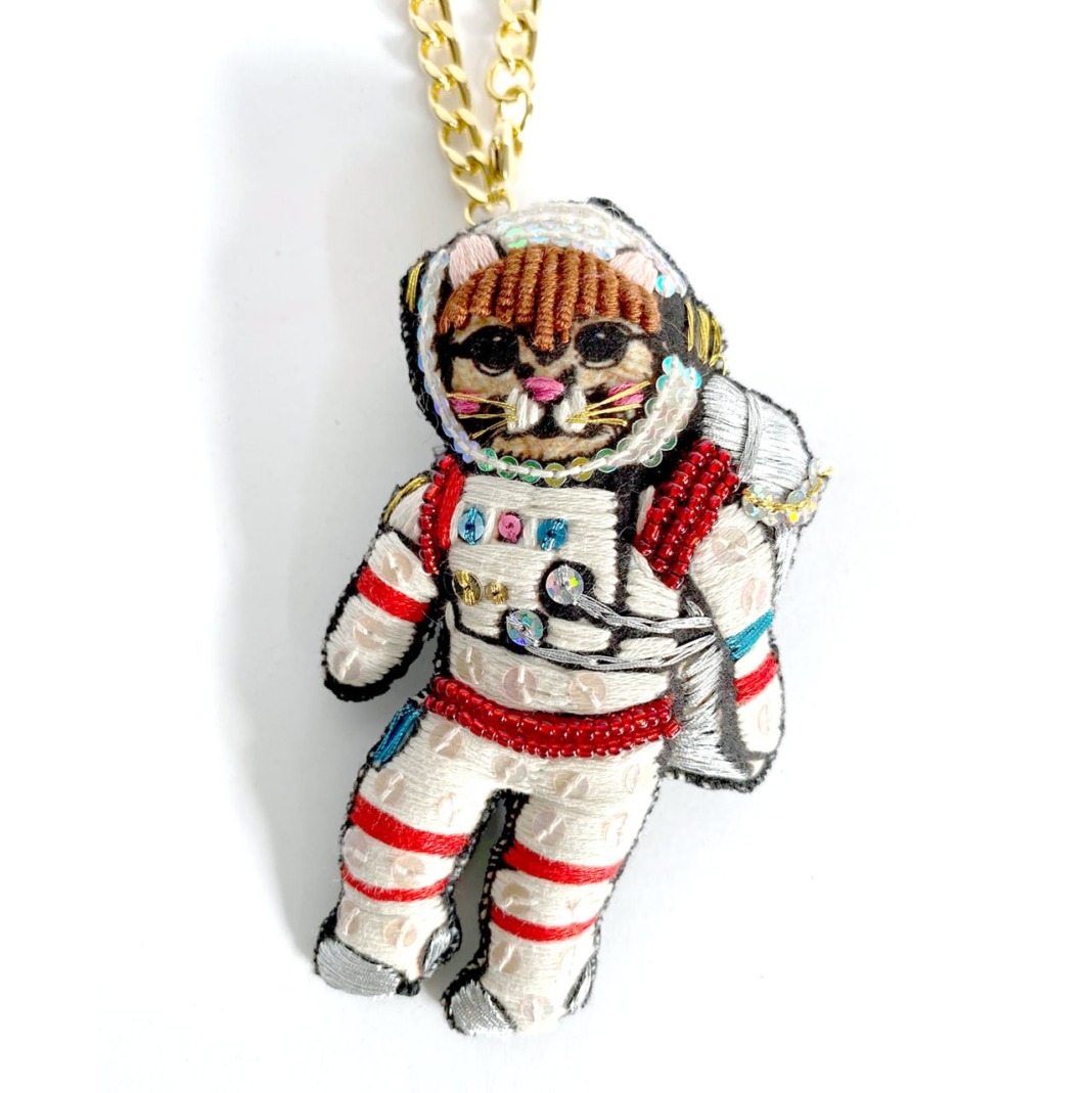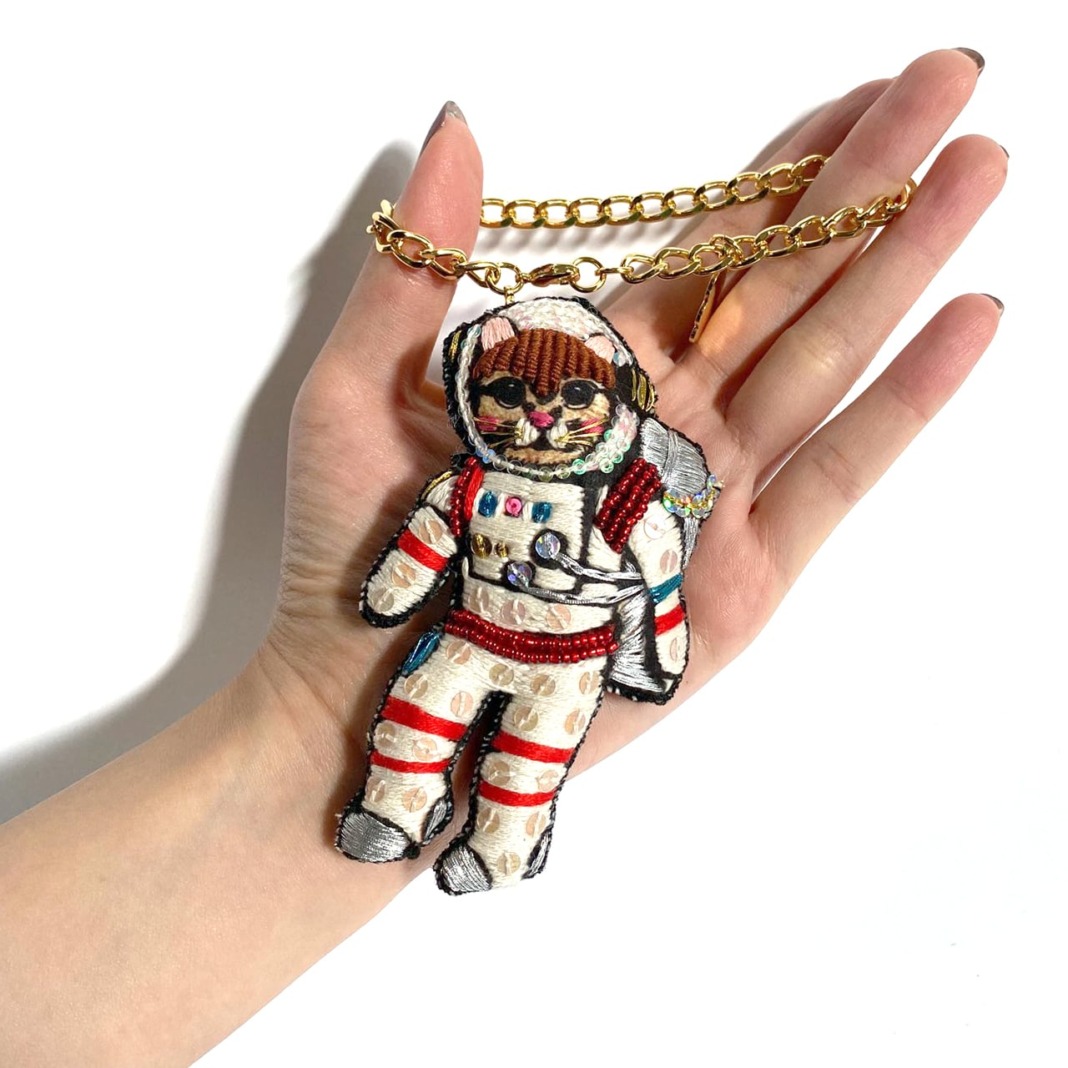【売切】刺繍バッグチャームブローチ 猫の宇宙飛行士/ロシアCAT