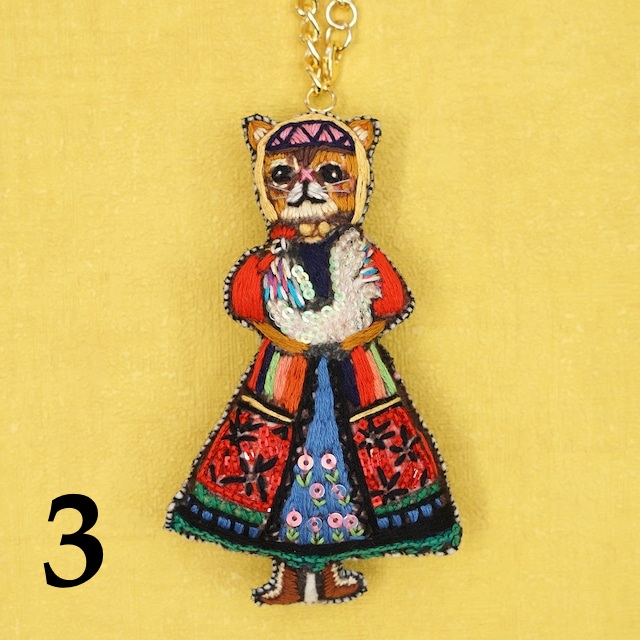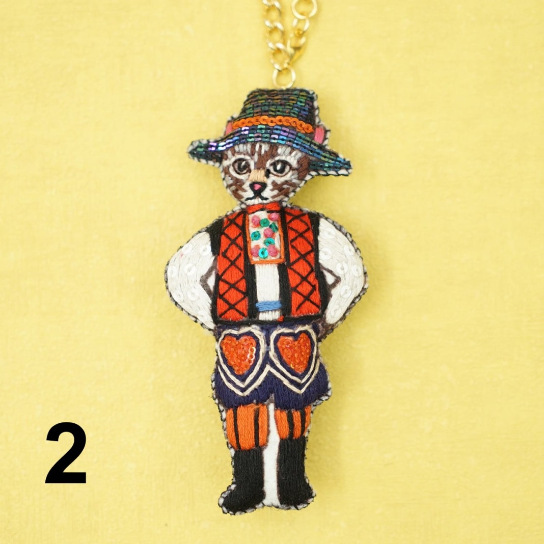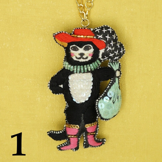 【売切】刺繍バッグチャームブローチ 長靴を履いた猫/Folkloreanimals Ameshocat・Exoticcat