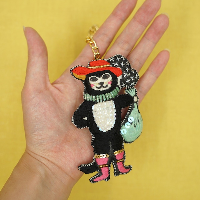 刺繍で物語の主人公や動物を表現しているユニークなチャーム。バッグチャーム金具は取り外しできるので、ブローチとしてもお使い頂けます。