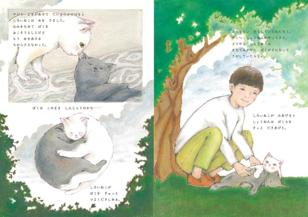 へとへとになって目を閉じてしまいそうになったとき出会ったのは、見たこともないほど美しいねこでした。いのちを救われ、人のあたたかさに触れることで灰色のねこは大切なことに気づきます。
