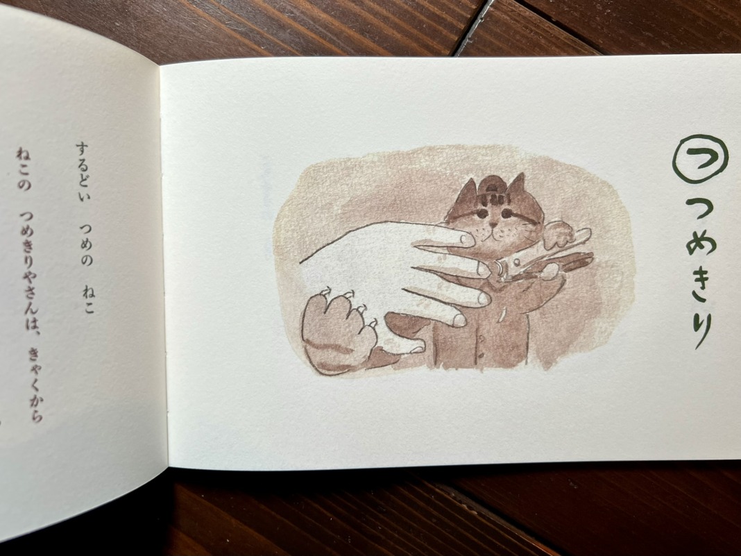 五十音の「あ」~「ん」までの46文字にそれぞれ短いお話と絵がついたゆかいな絵本。見開きで構成されています。