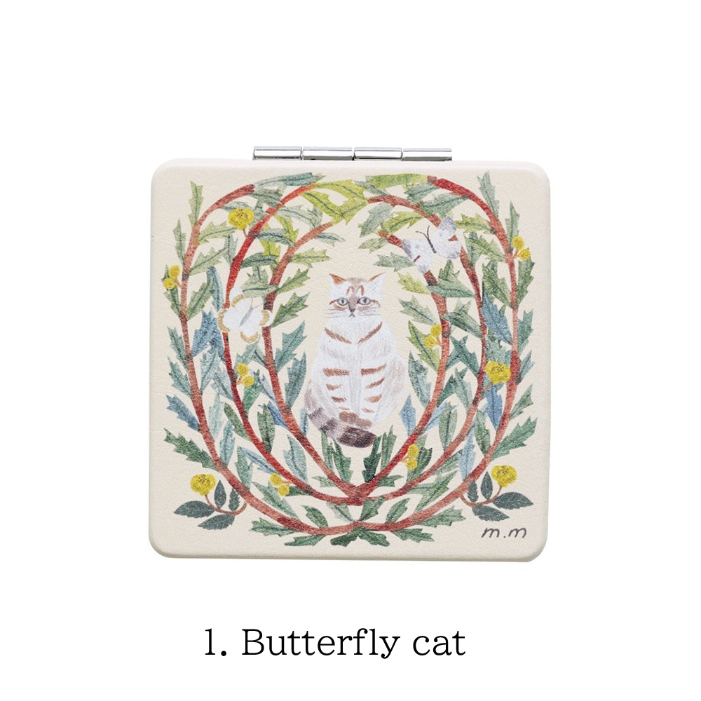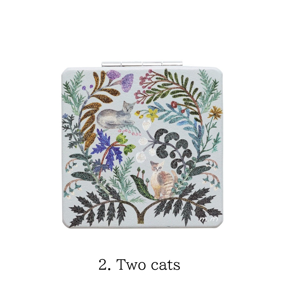 植物と動物たちが寄り添う、切り絵デザインが印象的なコンパクトミラー。松尾ミユキさんの世界観がぎゅっと詰まっています。