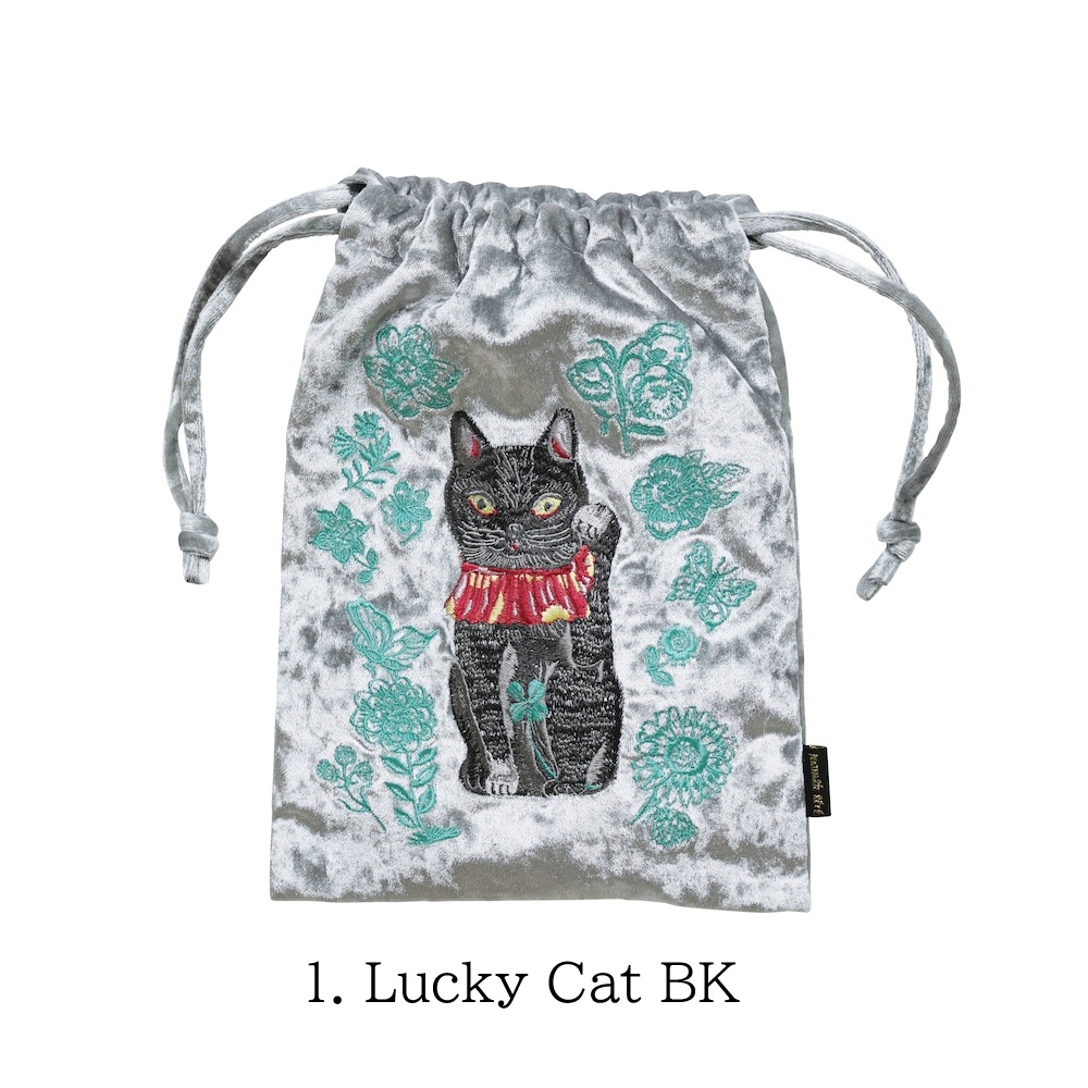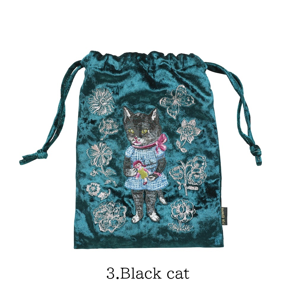 【売切】Nathalie Lete Velour Drawstring pouch ナタリー・レテ ベロア刺繍ポーチ