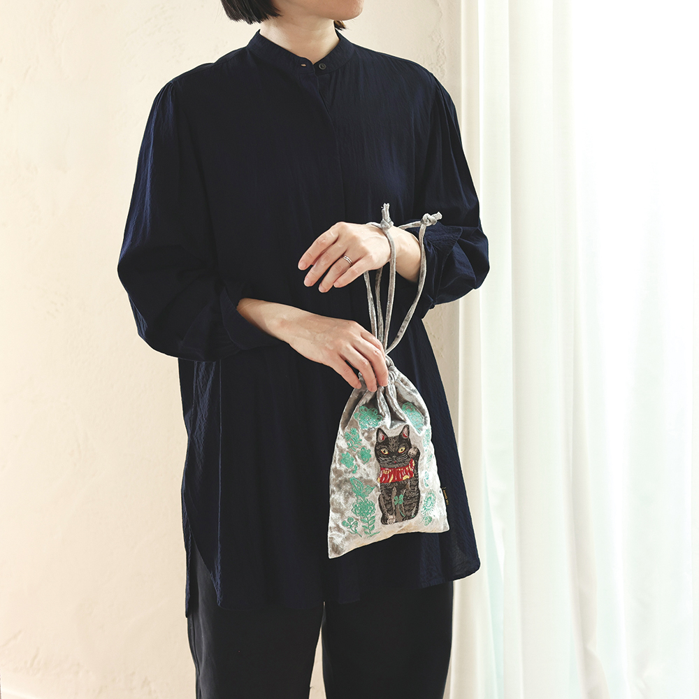 彼女の世界観を刺繍で丁寧に表現しました。小物やアクセサリーの収納はもちろん、ギフトバッグとしてもおすすめです。