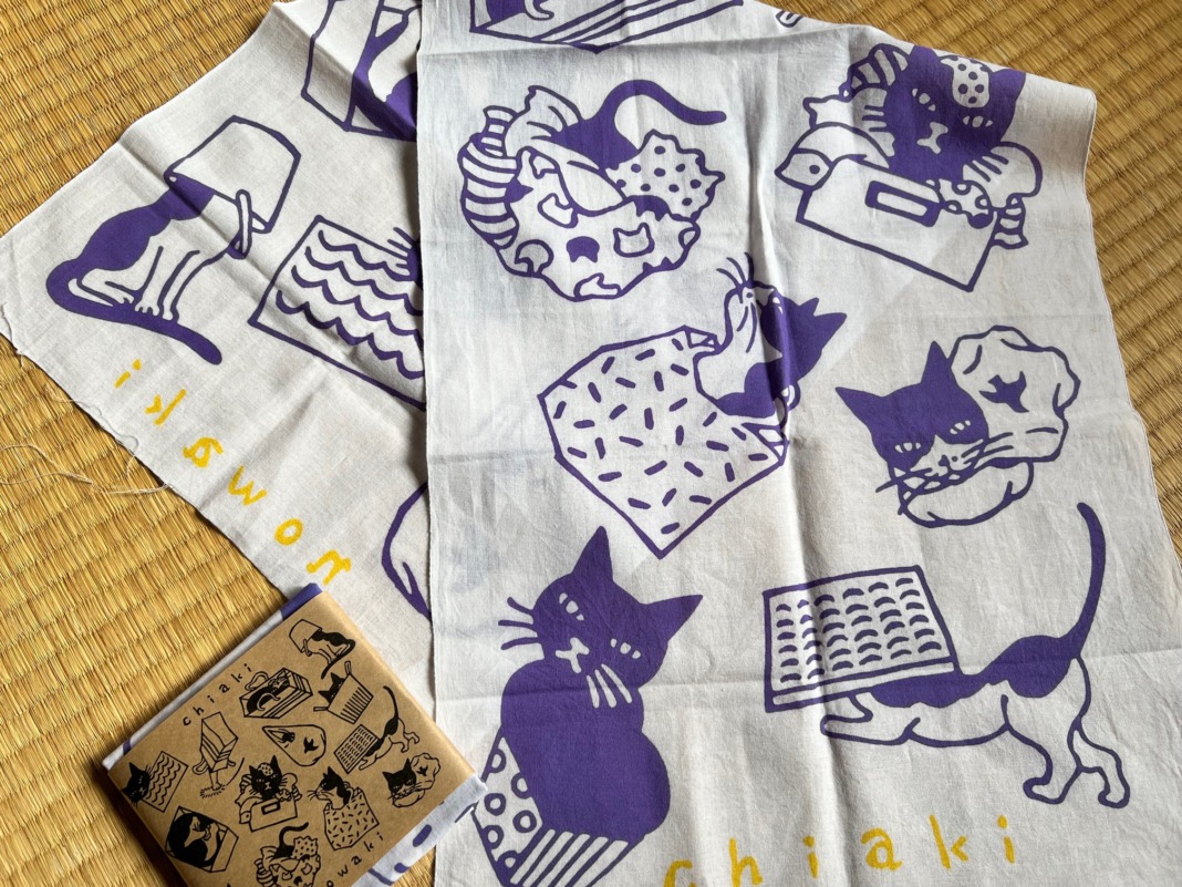 書籍『退屈をあげる』(青土社)の出版記念原画展で坂本さんと制作された、nowakiさんオリジナル手拭いです。こちらの紫は新色となります。