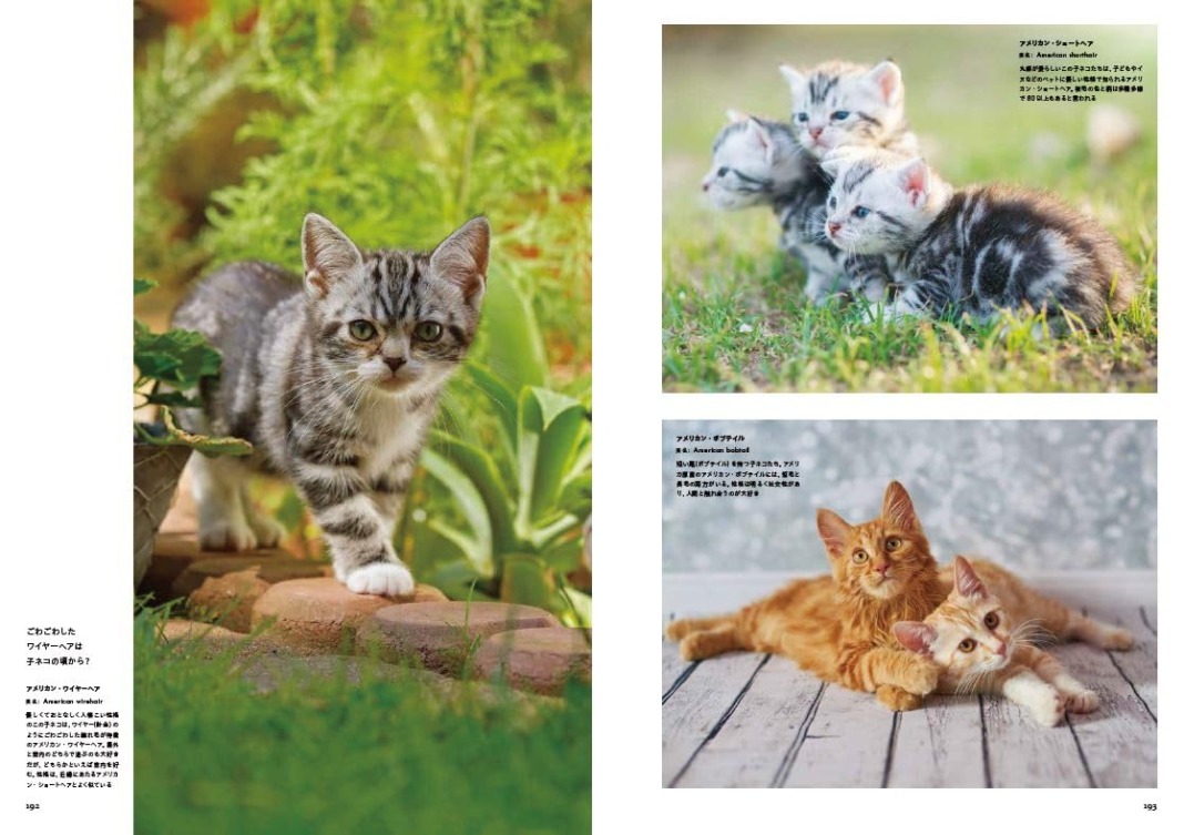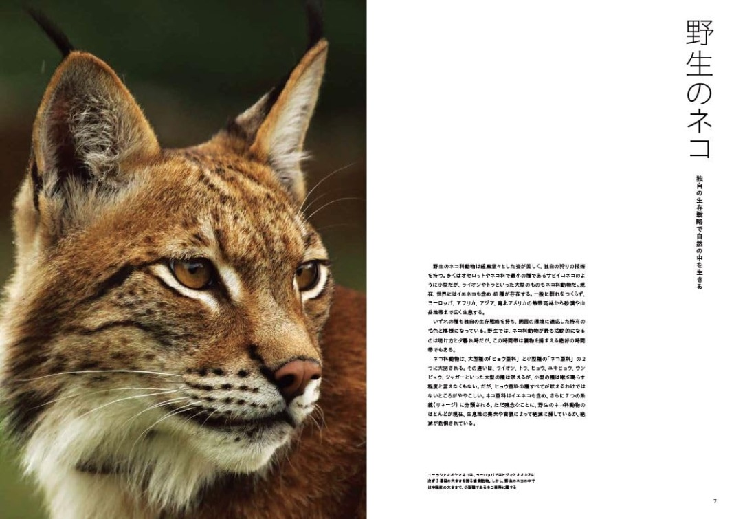 見惚れてしまうしまうほど威風堂々とした姿、思わず笑顔になってしまうかわいい姿。スコティッシュフォールドやロシアンブルーやなどの人気種から日本ではあまりお目にかかれない希少種まで、多種多様な飼い猫とマヌルネコやスナドリネコ、ピューマなど、独自の生存戦略で砂漠やジャングルといった過酷な自然のなかを生きる野生の猫のビジュアル図鑑です。