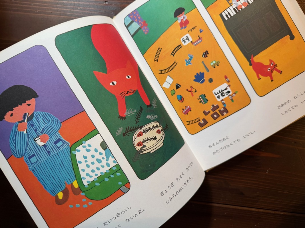 鮮やかな色使いとユーモアを楽しめる絵本です。