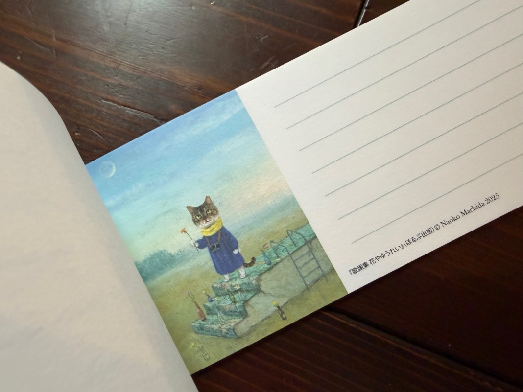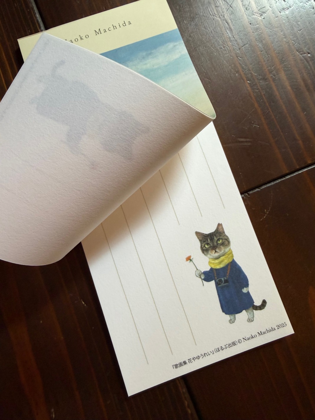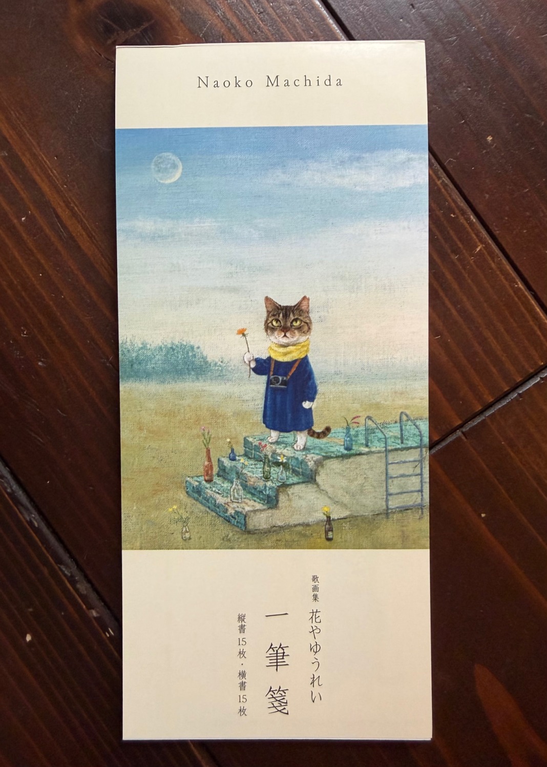 縦書きの一筆箋は使わない方も増えていますが、歌画集に合わせて短歌ノートのイメージで縦書きを入れました