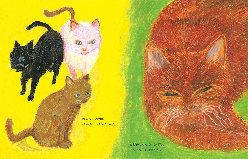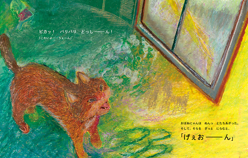 うちのねこは、おばあにゃん。おばあさんねこだから、おばあにゃん。ねこはみんな、「にゃーん」てなくけど、おばあにゃんは、「げおーん」てなく。ねこのヒゲはピンッと張ってるけど、おばあにゃんのはちりちり、しぼぼ〜ん。だけどね……。おばあにゃんは動物病院なんてこわくないし、かみなりだってへっちゃらなの!うちの大切なねこ、おばあにゃんのお話。