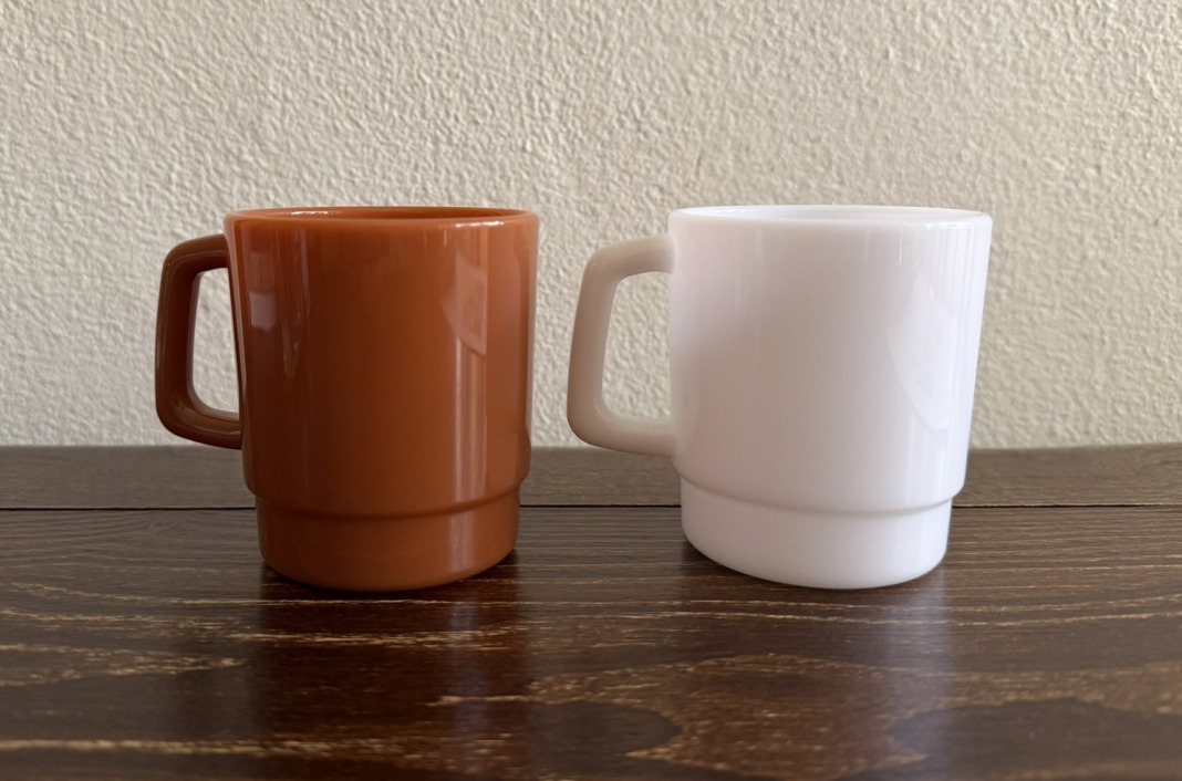 少しチープなフォルムが可愛く、それでいて肉厚のプラスチックのため、割れ等にはとても耐久性があります。スタックできるので、食器棚の狭いスペースも有効に使えます。